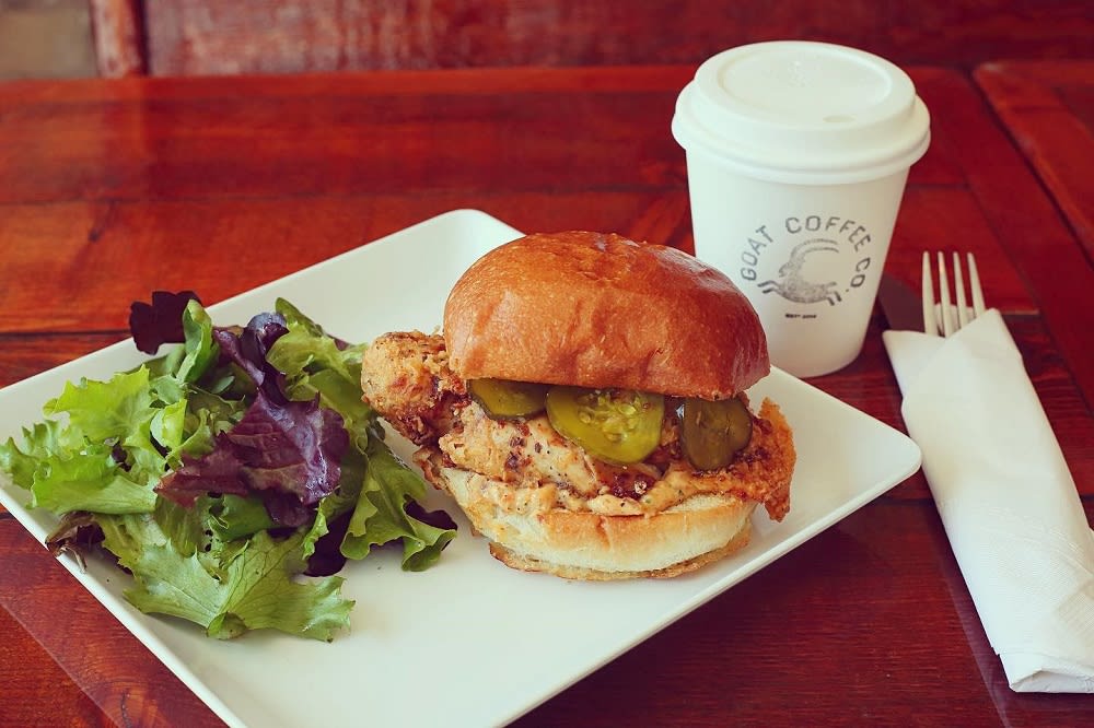You can certainly get a great cup of coffee or espresso at the Goat Coffee Co., but you can also get a lot more. This uniquely named café serves a wide range of lighter fare such as pastries, breakfast dishes, sandwiches, soups, and salads. The eccentric name comes from an Ethiopian legend involving a young goat herder, a monk, and the magic aroma of coffee beans. Customers can learn about this legend as they enjoy the wonderful coffee and bites to eat in this trendy space complete with Edison bulbs hanging over reclaimed wood tables.